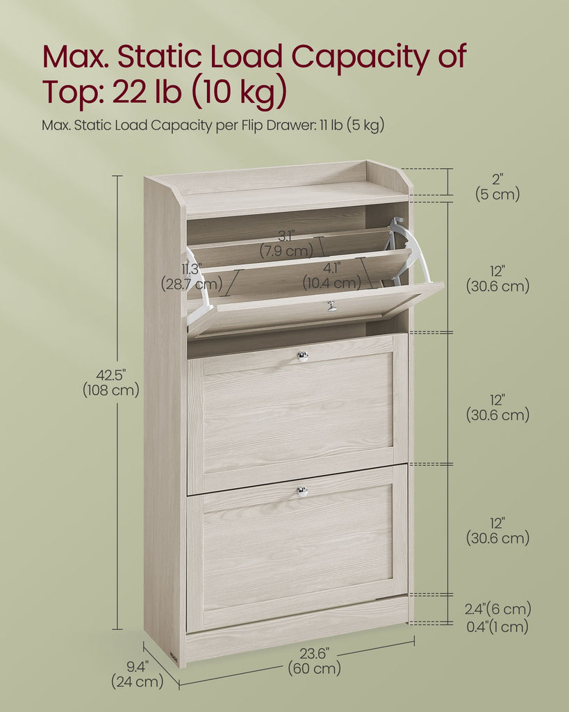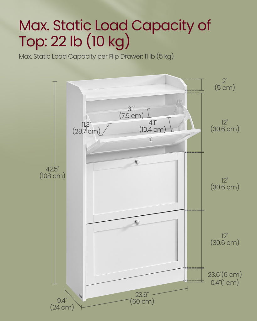 Max. Static Load Capacity per Flip Drawer: 11 lb (5 kg)