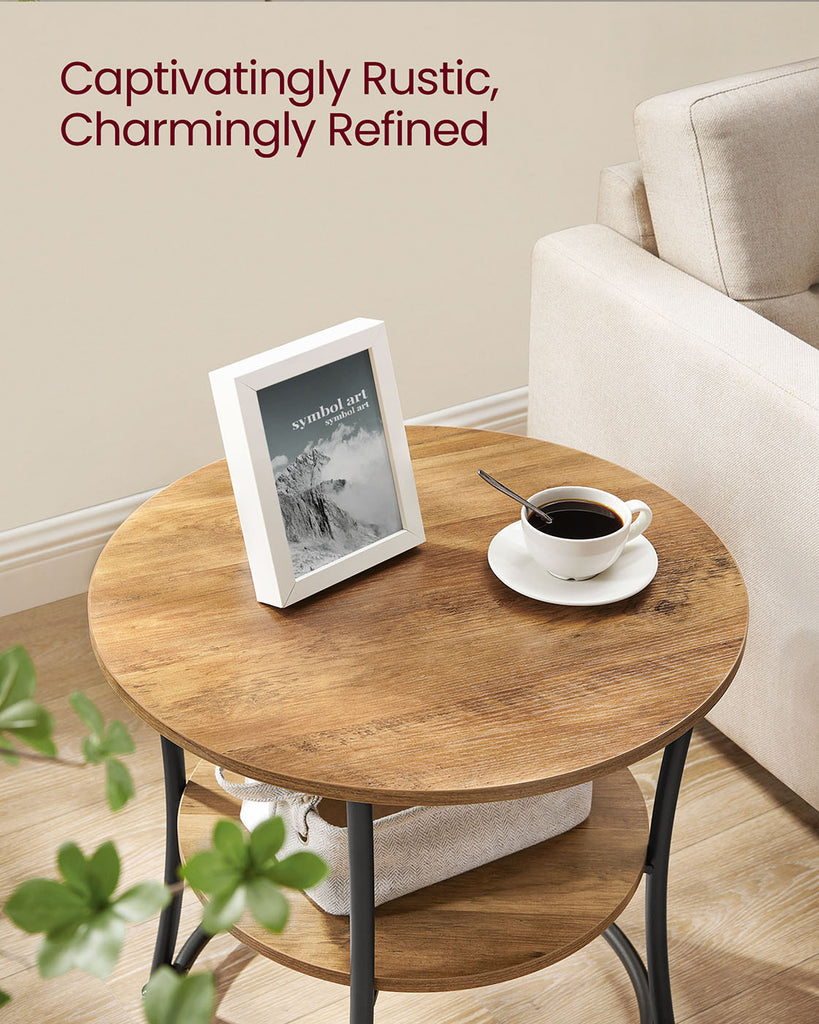 Side Table, Round End Table with 2 Shelves, Living Room, Bedroom, Easy Assembly, Steel Frame, Industrial Design, Rustic Walnut and Black