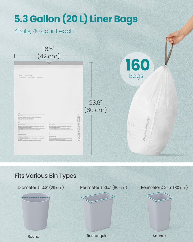 Capacity of Each Bag: 5.3 Gallons (20 L)
