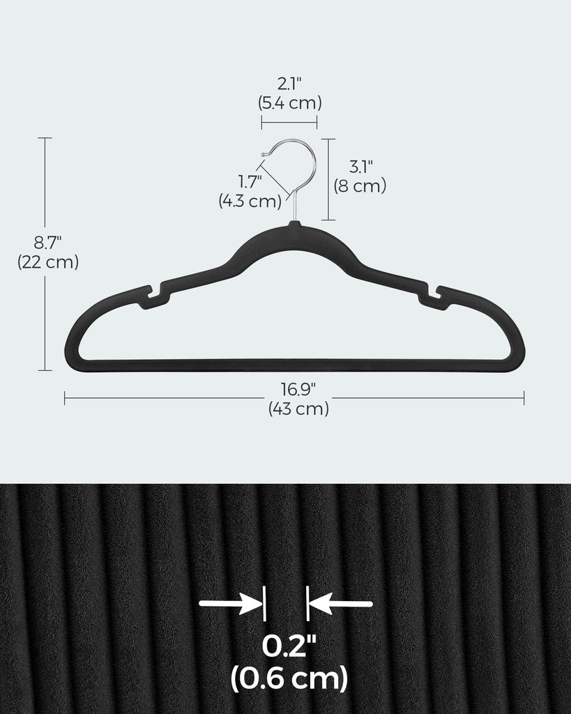 Total Weight of 60 Hangers: 9.5 lb (4.3 kg)
